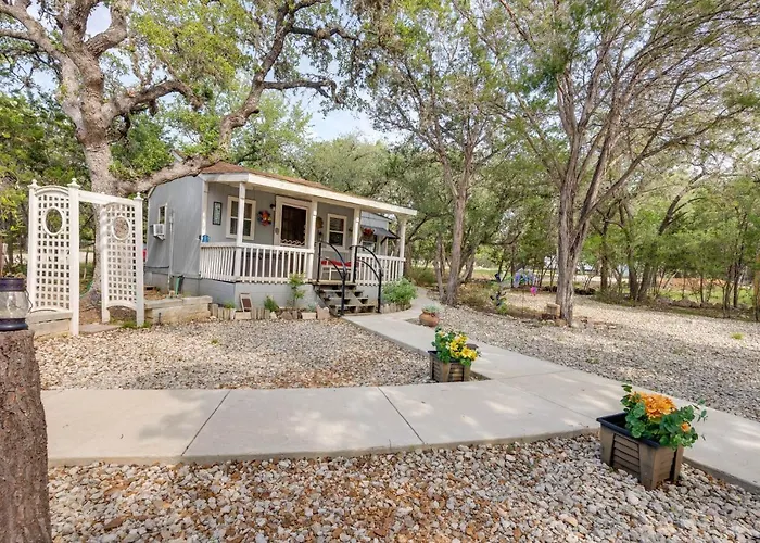 En el área exterior, encontrarás un jardín con vistas al lago, donde podrás relajarte y disfrutar de la tranquilidad. La propiedad también dispone de una zona de barbacoa y una cocina totalmente equipada, perfecta para preparar deliciosas comidas en compañía. Si buscas aventuras, el recinto se encuentra a solo 19 km de Wimberley y cerca de atracciones locales como el Heritage Museum of the Texas Hill Country.